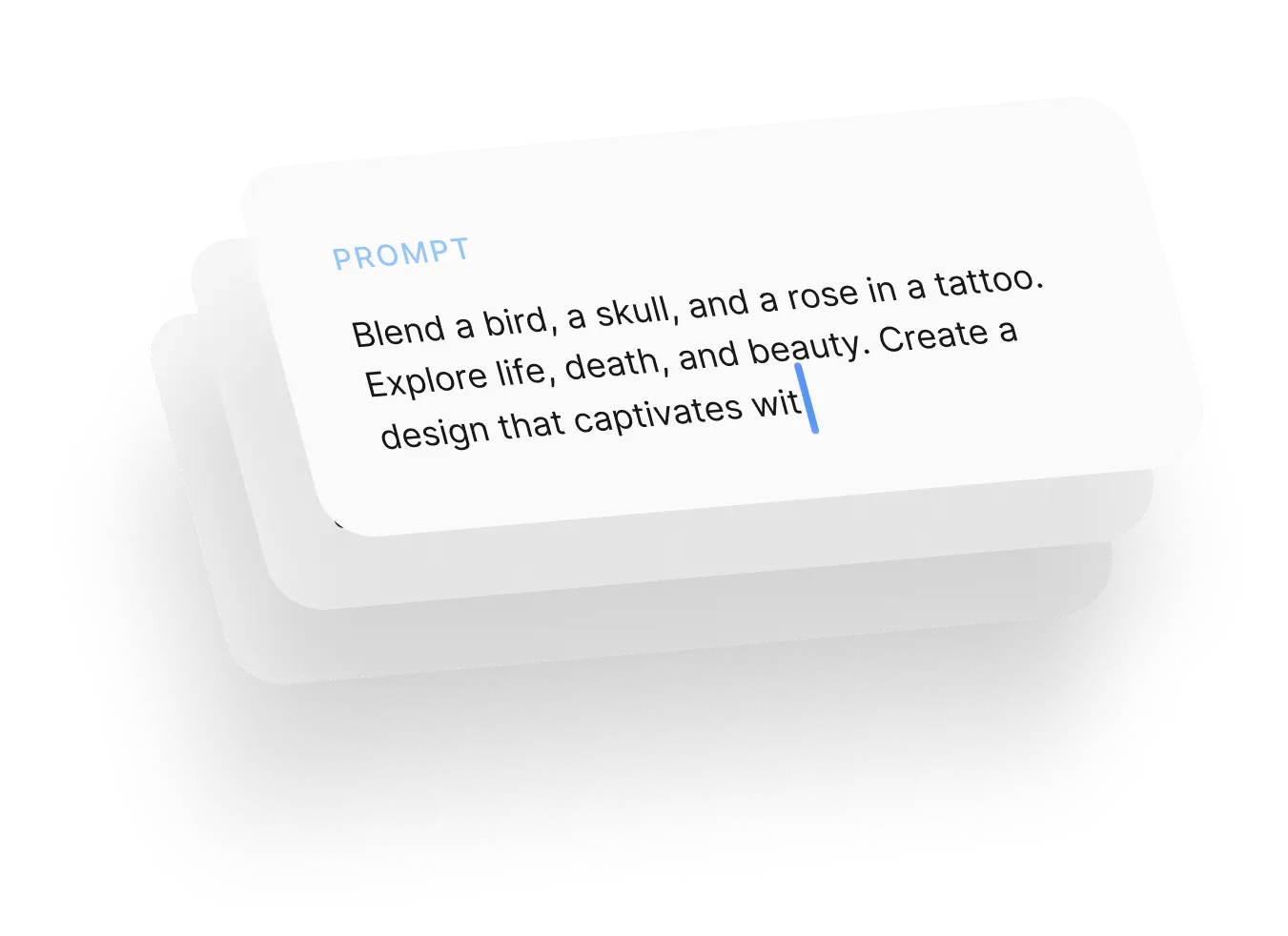 Write a short prompt and choose style & size. Add references if you like.